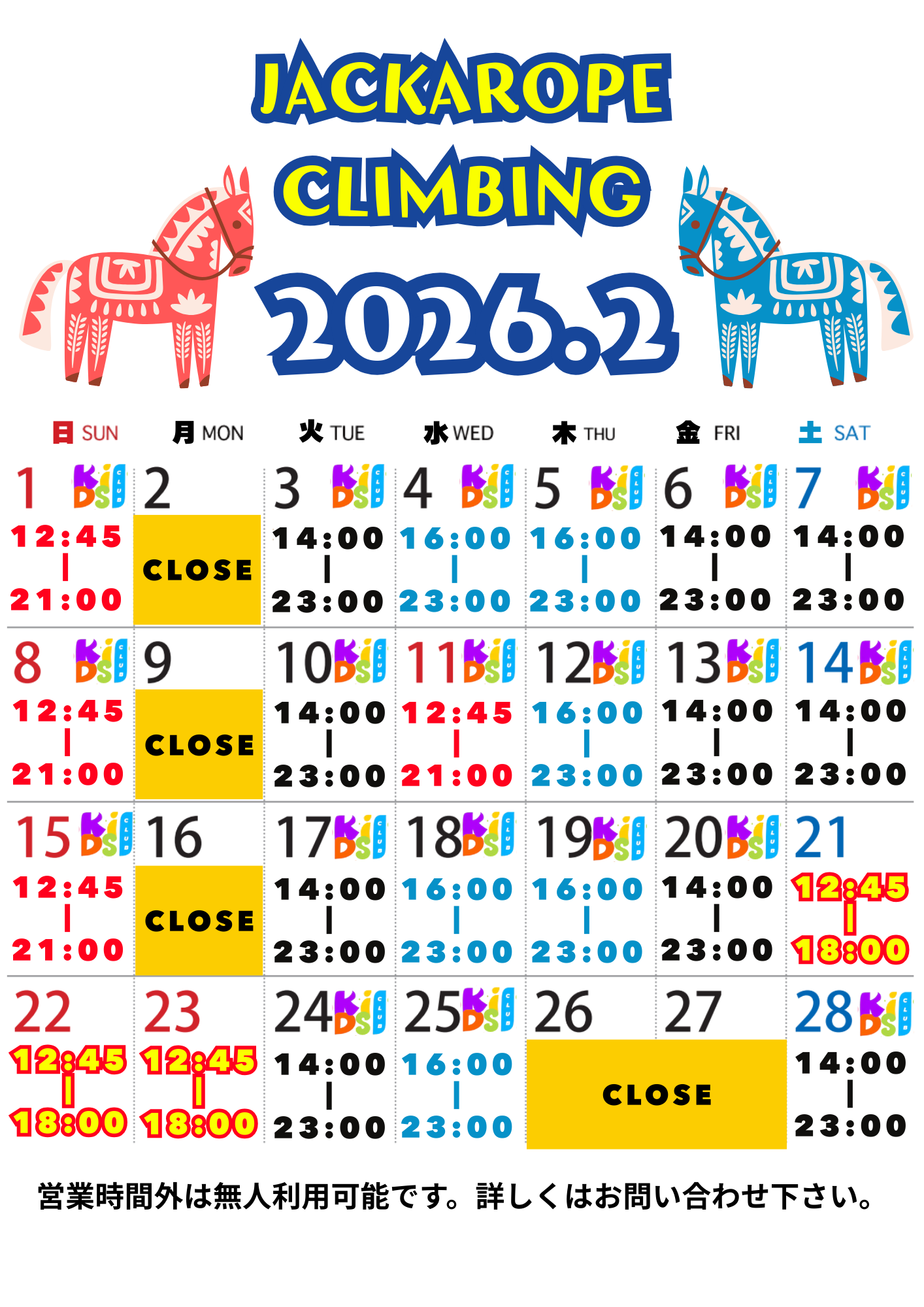 キッズスクールは以下の時間に開校!