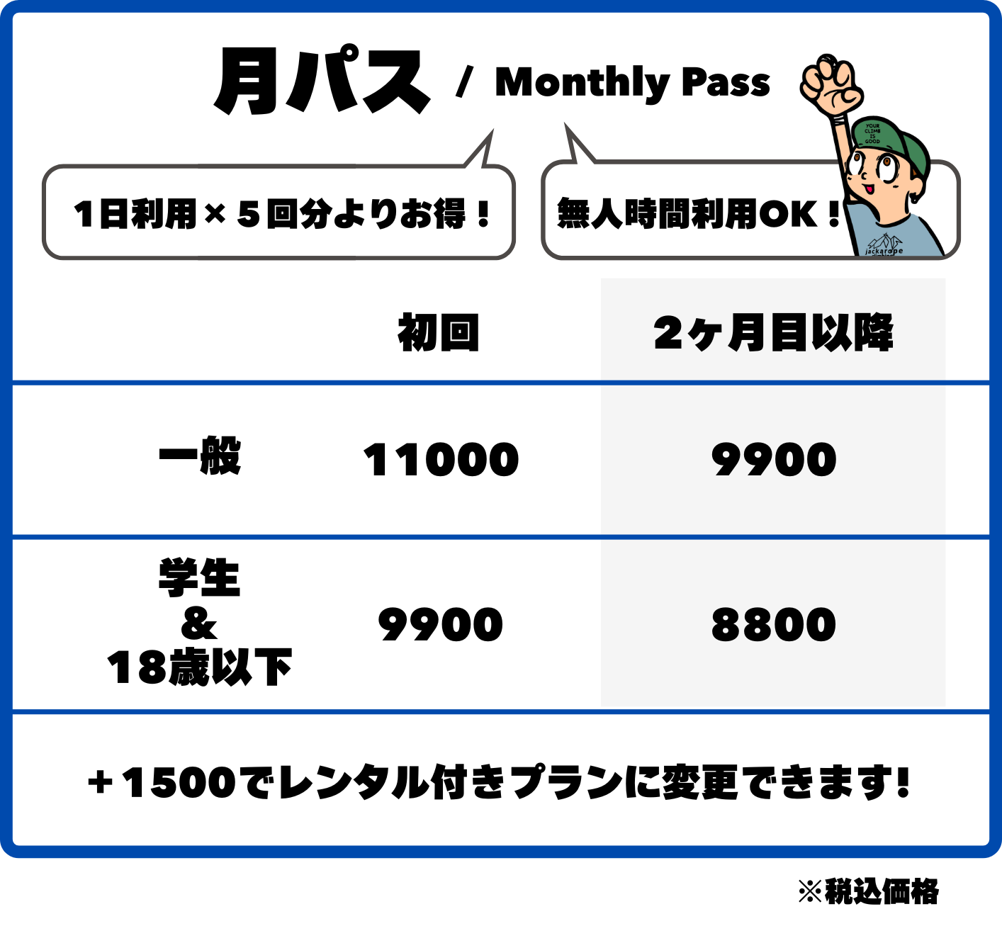 ※月パス登録2ヶ月目より3ヶ月継続が条件。